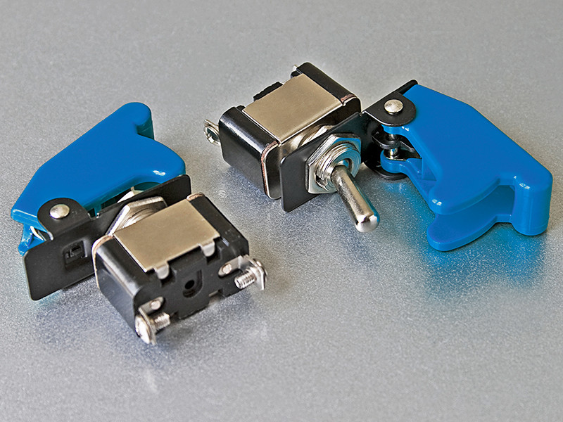 Тумблер SAC-01 BLUE KN3A ON-OFF с защитой от случайного включения (синии).